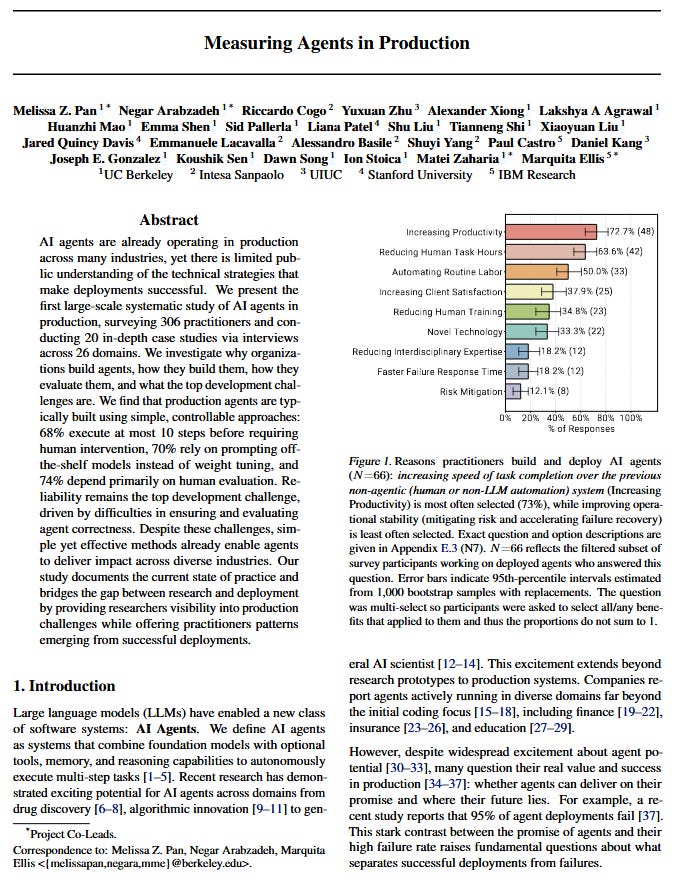 A recent paper “Measuring Agents in Production” provides some evidence. The paper is based on a study of AI agents in production, surveying 306 practitioners and conducting 20 in-depth case studies.