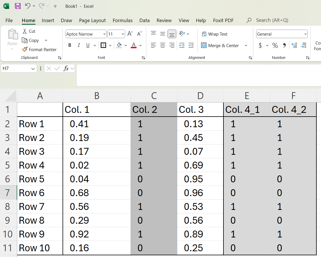For now, just remember this requirement, and think about how we can translate data into such a format that is suitable for the AI model. Think about a table that is filled with numbers in Excel. We already intuitively understand this. But there are some nuances for such tabular data. Sometimes we may not just have numerical data, but binary (Yes/No) or categorical (Low, Medium, High). We can simply convert this into numbers (see Col. 2 and Col. 4_1 and Col. 4_2).