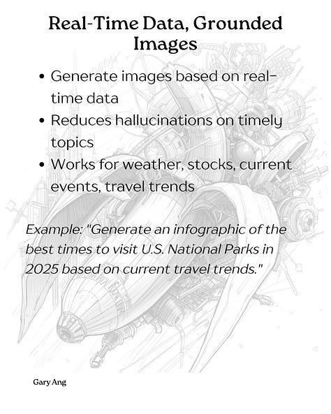 2️⃣ Grounding with Google Search - The model can pull real-time data (weather, stocks, current events) to generate factually-grounded images.