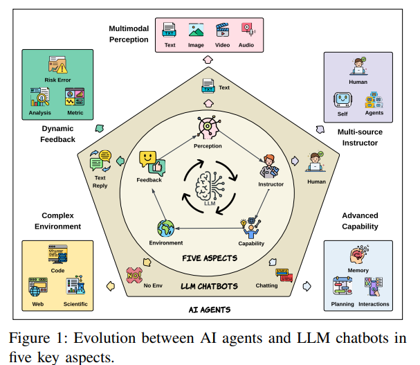 Frames evaluation as an evolutionary process. 5 key aspects when looking at this evolution - complexity of environments, number of sources of instructions, dynamism of feedback, degree of multimodal perception, state of capabilities. Also looks at this from the perspective of environments (coding, web, OS, mobile, scientific, gaming), and capabilities (planning, self-reflection, interaction, memory). (https://arxiv.org/pdf/2506.11102)